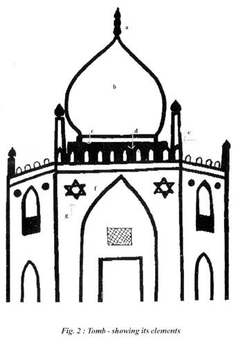 «ستاره ی داود: ستاره ی شش گوشی که از دو مثلث در هم فرورفته ی معکوس پدید می آید و یک سمبل مذهبی هندوان است که قدرت را تداعی می کند و نمایه ی بسیار مهمی در تدارکات نمایشی ادیان مختلف است. این علامت بر سر در بسیاری از مکان های اسلامی هند نیز دیده می شود که از آن جمله در قلعه ی کهنه ی دهلی، مقبره و مسجد همایون، فاتح پور سیکری و مکان های متعدد دیگر». (پرادوما کومار شارما، معماری هند و اسلامی در دهلی و آگرا، ص ۱۸، متن اصلی)