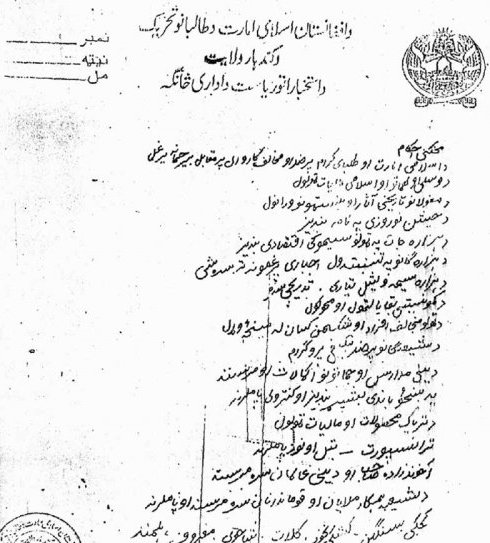 بد کردید احمقها با این اتهام بی جای تان. اول اینکه این پشتوی غلط راکه شما بیسوادان نوشته اید هیچ طالبی نه می نوشت. می پذیریم که از لحاظ تعلیمات عصری طالبان در سویه پایین قرار داشتند اما حد اقل کسانی که این چنین حکم مهمی را مینوشت با زبان پشتو بلدیت داشته و درست مینوشتند. شما دشمنان منفی ملت افغانستان به هیچ چیز صرفه نه می کنید. باور کنید که با ملاحظه این چنین نوشته های بیجای شما شرم بر وجودم حاکم می شود اما نه میدانم شما شرمی تان چه شده است؟ انسان حد اقل اگر دشمنی هم می کند به رقم می باشد اما دشمنی شما آنقدر غیر معقول، نا مناسب و بی رقم است که یک طفل هم حماقت های تان را درک می کند. خداوند شما را هدایت کند. بدون شک از افغانستان خو گم شده اید اما اگر رحم خدا بالای تان نه میبود حتما از روی زمین هم گم می شدید.