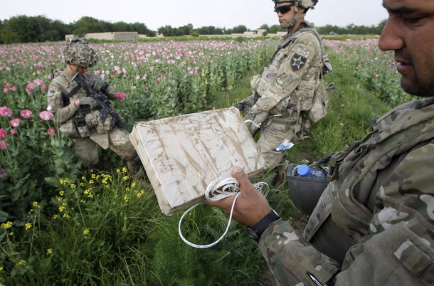 حدود یکصد و پنجاه هزار سرباز بین المللی در افغانستان می باشند که بیشتر آنان در جنوب مستقر هستند. کشورهای غربی مدعی اند که مبالغ هنگفت پول برای مبارزه با مواد مخدر به مصرف می رسانند اما نظامیان آنان بدون کدام مبارزه ای با تولید کنندگان و قاچاقچیان مواد مخدر، در بزرگترین کشتزارهای مرگ جهان در جنوب و شرق افغانستان قدم می زنند.