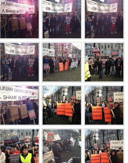 گروهی از هزاره‌های ساکن بریتانیا امروز دوشنبه ۳۰ آوریل (۱۱ اردیبهشت) در مقابل سفارت پاکستان در لندن دست به تظاهرات زدند.