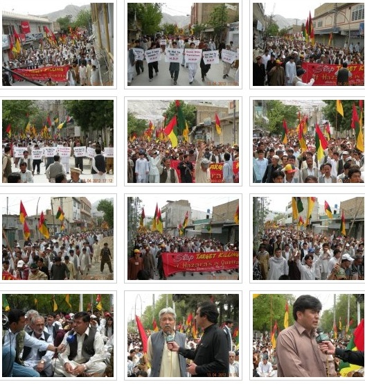 مردم هزاره در کشورهای مختلف تظاهرات جهانی خود را از روز 20 ماه اپریل سال 2012 در اعتراض به نسل کشی، کوچ اجباری و تبعیض آغاز کرده اند. تاکنون در بیش از 13 شهر مهم از جمله کویته (بصورت متواتر)، لاهور، کراچی و اسلام آباد، پاکستان؛ بروکسل بلژیک؛ بامیان و نیلی، افغانستان؛ جاکارتا، اندونزی؛ استکهلم، مالمو و هسلهولم، سویدن؛ هامبورگ آلمان و شهر وین اتریش این تظاهرات برگزار شده است و انتظار می رود این تظاهرات جهانی تا پایان ماه می در بیش از 20 شهر دیگر در کشورهای مختلف جهان از جمله روم، نیویورک، تورنتو، کابل، سیدنی، ملبورن، آدلاید، کانبرا، دن هاگ، استانبول، آنکارا، اسلو، تروندهایم، لندن، هلسینکی و کپنهاگ برگزار شود. فعالان حقوق بشر و برخی از مقامات از جمله وکلای پارلمان کشورهای مختلف، در تظاهرات جهانی هزاره ها شرکت می کنند. همچنین در صورت عدم توقف جنایات علیه مردم هزاره، تظاهرات جهانی گسترده تر از پیش و بصورت متواتر در شهرها و کشورهای مختلف دنبال خواهد شد.