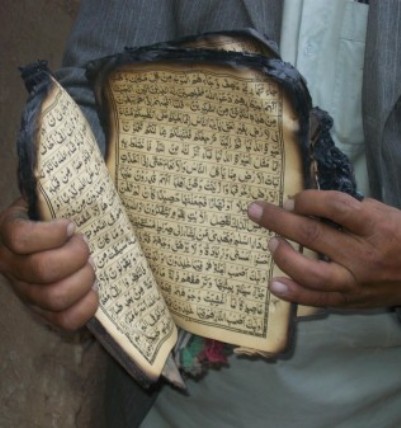 ورنه طالب مکتب ها را میسوزاند کتابخانه ها را اتش میزند طبعا قران در بین ان است اما کسی عکسالعمل نشان نمیدهد.
