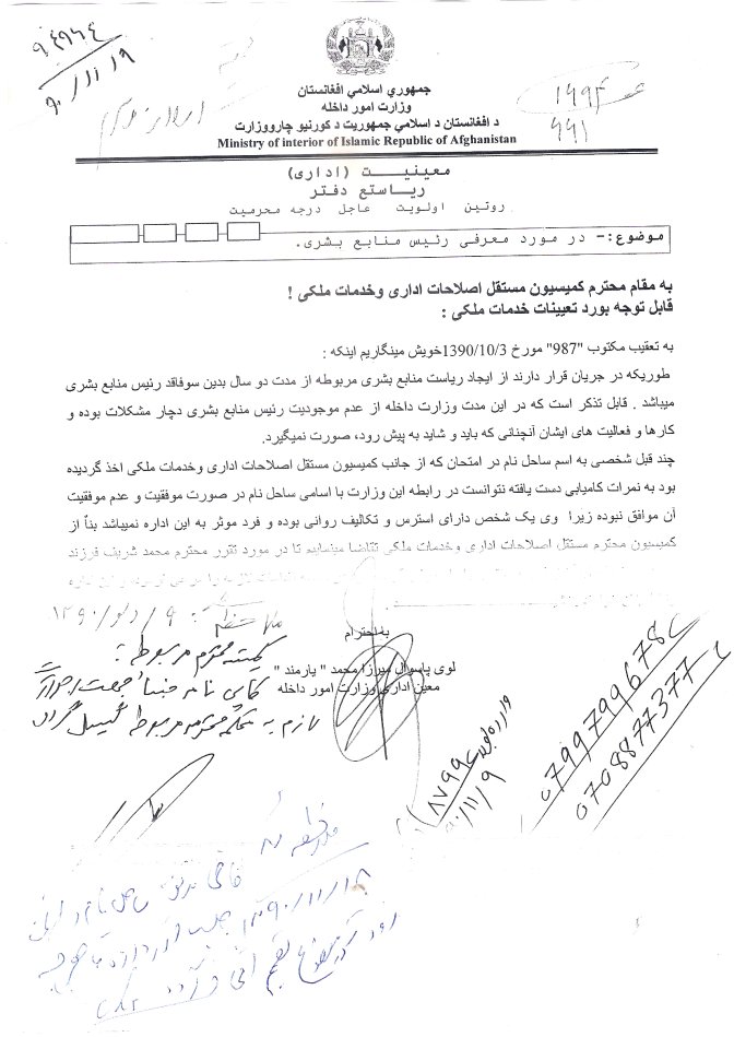 لازم به تذکر دانسته میشود که تا اکنون مدت اضافه تر از یکنیم سال میگردد که کیس پست ریاست منابع بشری وزارت امورداخله با وصف اینکه در محکمه رسمی دولت تحت بررسی قرار دارد ولی بنا بر معاذیر و خلا هائیکه در قوانین و صلاحیت های قضات و اهل خبره وجود دارد, هیچکس و هیچ مقام حاضر نمی گردند تا نتایج پارچه های امتحانات تحریری و تقریری بنده را در روشنی علوم اجتماعی و علوم بشری بطور عادلانه بازنگری کنند, در حالیکه ادارۀ اصلاحات اداری و خدمات ملکی افغانستان در مطابقت با پیوند های شخصی, تنظیمی و قومی نه تنها در راستای ارزیابی نتایج بی عدالتی و حق تلفی نموده و مینمایند بلکه پروسۀ اصلاعات اداری را مخصوصا شفافیت رقابت آزاد را با مداخلات غیر قانونی اشخاص و افراد مصلحتگرا و نشنلیستان فاسد و بی کفایت مساعد ساخته اند.