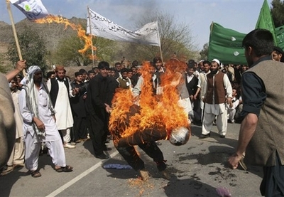 تظاهرات و مخالفت با اقدام کارتونيست ، حق مسلم مردم می باشد اما چرا با همه ی کشتار، جنايت، دزدی و چپاولی که در افغانستان صورت گرفته و می گيرد، آنان عليه، جنايتکاران، آدمکشان، دزدان و سوء استفاده کننده گان از نام اسلام در افغانستان کاری نمی کنند.