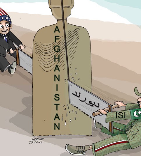 خط دیورند در 1893 در زمانی که امپراتوری بریتانیا حاکمیت بلا منازع در سرزمین هند قدیم داشت از یک طرف ( سر هنری مورتیمر دیورند) و امیر قاتل و سفاک افغانی امیر عبدالرحمن از جانب دیگر مورد تائید و موافقه قرار گرفت. انتخاب ای اس ای و امریکا نشان دهنده سطحی نگری کارتونیست از یک واقعیت تاریخی میباشد.