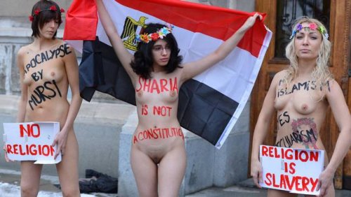 اعتراض دختران عریان مصری دراروپا برضد اسلامگرایان مصری: