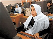I was just at the new women’s dormitory there, supported by USAID. It was opened last year by Laura Bush. It’s like a US dorm— laundry, computer room, clean. It’s beautiful. The university itself is nothing to write home about, but there are many, many women there. Not as many as the US, but good. You can’t pick your field. You are assigned to a course of study based on your test scores. The top scorers go to medicine, next level are engineers, then down from there.
