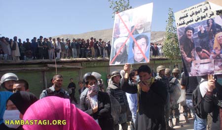 طی روزهای اخیر ما فراوان تلفن های تهدید آمیز و لمپنانه از جانب چوکره های جنگسالاران دریافت نمودیم که تلاش داشتند با زورگویی و ارعاب مانع تظاهرات ما گردند. وقتی صبح روز پنجشنه اعضا و هواداران حزب در سینما پامیر تجمع کردند، متوجه شدند که بیش از یکهزار تن از نیروهای پولیس و امنیت ملی منطقه را در محاصره گرفته، عبور و مرور به جاده میوند را بند و تمامی دکانهای این مسیر را بسته اند. مقامات بلندپایه پولیس و امنیت که قبل از تظاهرکنندگان خود را به محل رسانیده بودند، با برخورد خشن مقابل اعضای حزب گفتند از «بالا جای» حکم شده که به هیچصورت اجازه این راهپیمایی داده نشود. اما وقتی آنان خود را در برابر جمعیتی یافتند که هر لحظه بر تعداد شان افزود میگردد و بچه ترسانک های آنان بر روحیه شان تاثیری ندارد، اعلان کردند که تنها در صورتی اجازه داده خواهد شد که بدون حمل پلاکارتهای «رهبران جهادی و مقامات» و سروصدا صورت گیرد. وقتی بازهم موجی از جمعیت اعتراض کنان بر این حرکت غیرقانونی پولیس شوریدند، بعد از حدود یک ساعت دعوا و جنجال و تماس های پیاپی اراکین پولیس و امنیت با مرکز شان، بالاخره قومندان امنیه کابل شخصا با یکی از مسئولین حزب تلفنی صحبت کرده تهدید کنان گفت «به شما در صورتی حق تظاهرات میدهیم که به تصاویر رهبران جهادی اهانت نکنید، آنها را به آتش نکشید و یا زیر پا نکنید، اگر چنین کردید از خود گله داشته باشید.»