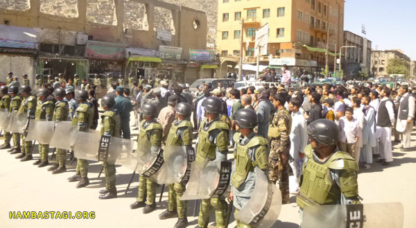هجوم نیروهای پولیس و امنیت ملی دولت بر تظاهرات و فعالین حزب همبستگی افغانستان