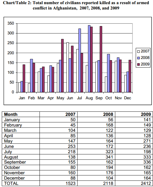 تنها در سال های 2007، 2008 و 2009، حداقل 6 هزار و 53 غیر نظامی کشته شده اند./ کوچی های طالب تنها تهدید امنیتی برای باشندگان غزنی و میدان نیستند و در نقاط مختلف افغانستان آنان می توانند جان مردم را بگیرند.