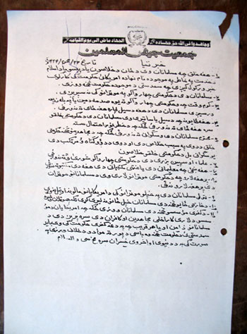 3. به تمام اشخاص به طور جدی اخطار داده می شود که از دادن و افشاء کردن نامهای مبارک مجاهدین به عساکر صلیبی و مزدوران افغان انها طی عملیات ما خودداری کنند، و همینطور به آنهایکه برای آمریکای ها و غلامان افغان آنها جاسوسی می کنند اخطار داده می شود که از این رفتار شیطانی اکیدا صرف نظر کنند وگرنه بدستان مبارک مجاهدین مطابق فرموده های شریعت مجازات خواهد شد.