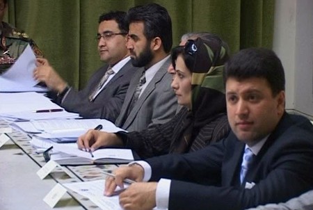 ۱- خانم منیژه باختری( نویسنده) در کنار دیپلومات ها و جاسوسان دربار حامد کرزی