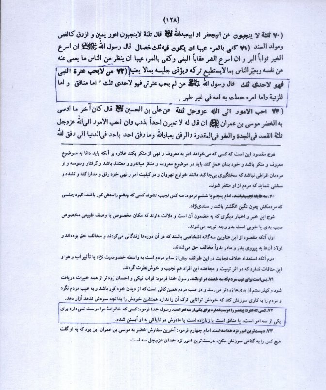 سول خدا فرمود کسی که خانواده مرا دوست نمی داردبرای یکی از این سه امر است. 1- یا منافق است 2- یا زنازاده است. 3- یا مادرش درناپاکی به او ابستن شده. منبع: کتاب خصال شیخ صدوق، جلد اول، ص128،حدیث 72/ این کتاب تحت نظر و به قلم ایت اله کمره ای نوشته شده. چاپ شده در قم به سال 1374