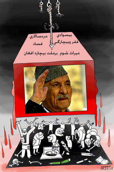 وآن قاتلان ملت افغانستان که یکتعداد بنام جهاد ودفاع از اسلام میلیونها هموطن ما را به قتل رسانیدند و وطن عزیز ما را به کنواله تبدیل نمودند و هنوز هم از مقامات بلند دولتی بر مردم بیچاره و مظللوم افغانستان می تازند و بدانند که آخر به چنین سرنوشتی دچار میشوند .