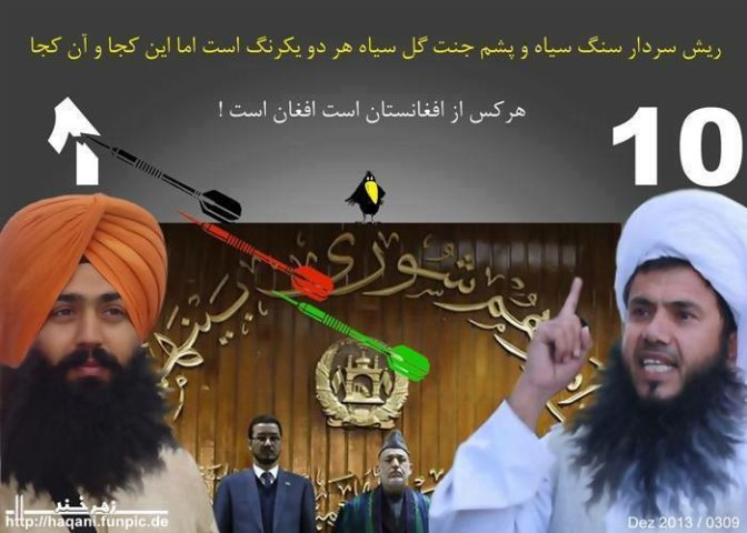 • به تعداد ده رأی ده چوکی برای کوجی های پشتون د ر پارلمان افغانستان ، مال مرد م خوری ا ست نا روا ا ست ظلم ا ست به د یکرا ن جفا ا ست ، همچو بی انصافی و ظلم و جفا ا ست که افغانستان ترقی نمیکند خداوند حق المبین