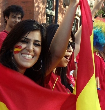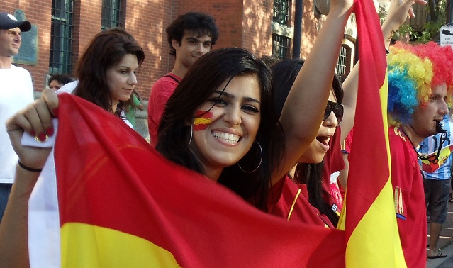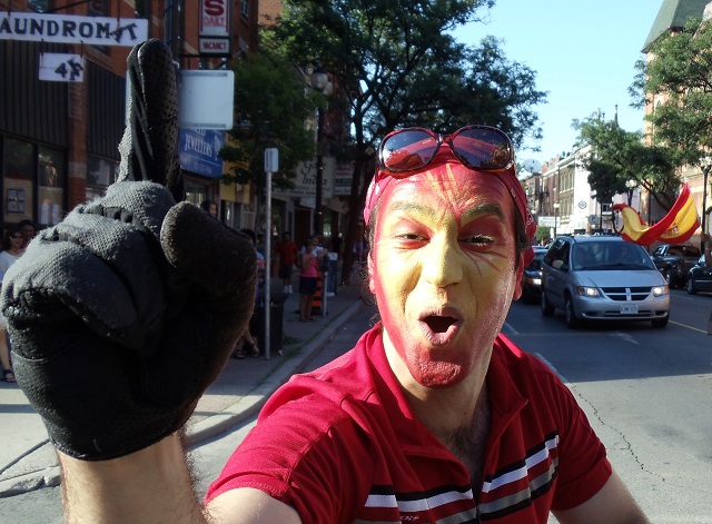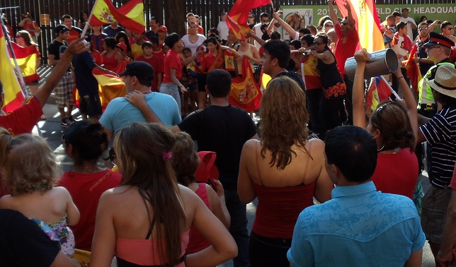 هر چند به فوتبال علاقه ی شدید ندارم اما شادمانی و پای کوبی طرفداران تیم اسپانیا که اکثرا اسپانیایی ها بودند مرا واداشت تا دقایقی را از موتر پیاده شوم و با لینز دوربین عکاسی شریک شادیهای شان باشم و این هم تصاویر از این جشن و پاکوبی .