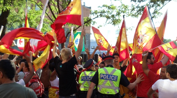 عکس هایی از پای کوبی طرفداران تیم اسپانیا در شهر هملتون کانادا