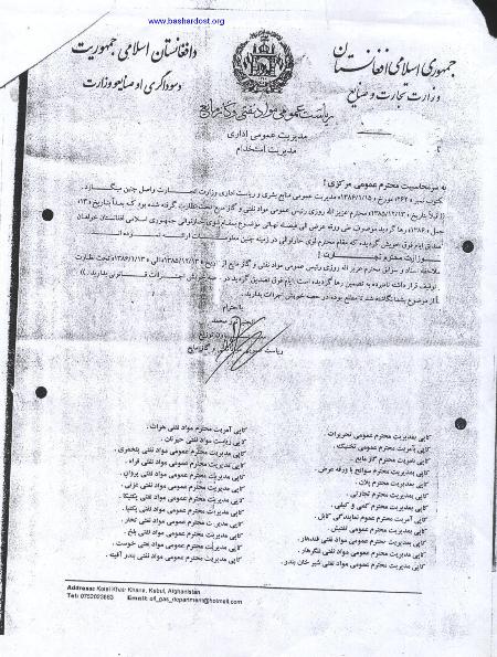 داکتر رمضان بشردوست، وکيل مردم در پارلمان افغانستان با افشای چند سند در سايت رسمی خود، بخشی از مافيای مواد نفتی بی کيفيت و تقلبی را افشا نموده است. اين اسناد تشخيص لابراتوار درباره ی بی کيفيت و تقلبی بودن آن و مکاتبات اداری و پيگیری های قضايی بی نتيجه را شامل می شود. رمضان بشردوست همراه با افشای اين اسناد، نامه ی سرگشاده ای را از کارمندان رياست عمومی مواد نفتی نيز منتشر نموده که در بخشی از آن آمده: