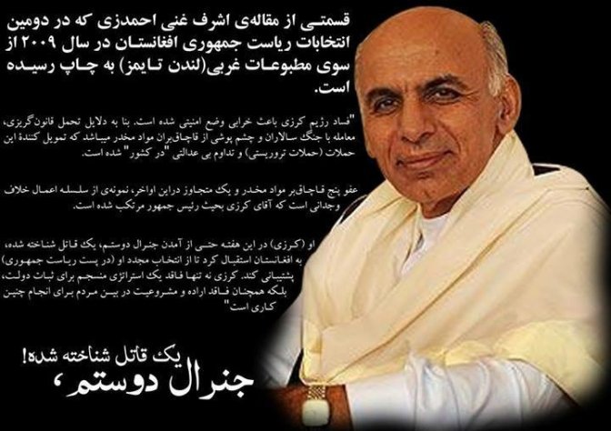 اما اگر که فاشیست مشهور اوغانی غنی یهودی به یاری دوستم به قدرت برسد ؛ مسوول دزدان پنجشیر خواهد بود نه ازبک ها و دوستم!