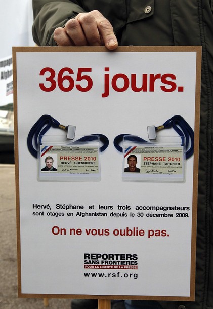 روز سی ام دسامبر سال 2009، دو خبرنگار فرانسوی به همراه مترجمان افغانستانی آنان در شرق افغانستان توسط تروریستان طالب، آنانی که حامد کرزی برادران خود می خواند، ربوده شدند. تاکنون چند کمپاین برای آزادی این خبرنگاران راه اندازی شده ولی از آزادی آنان خبری نیست.