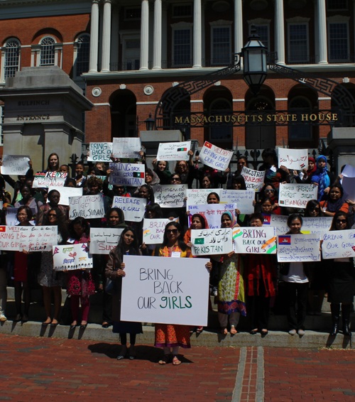 Thursday 29 May 2014, around sixty women from twenty-one countries gathered in front of Massachusetts State House and asked solidarity for Nigerian girls. The Nigerian schoolgirls were kidnapped by a group of gunmen almost a couple of months ago.