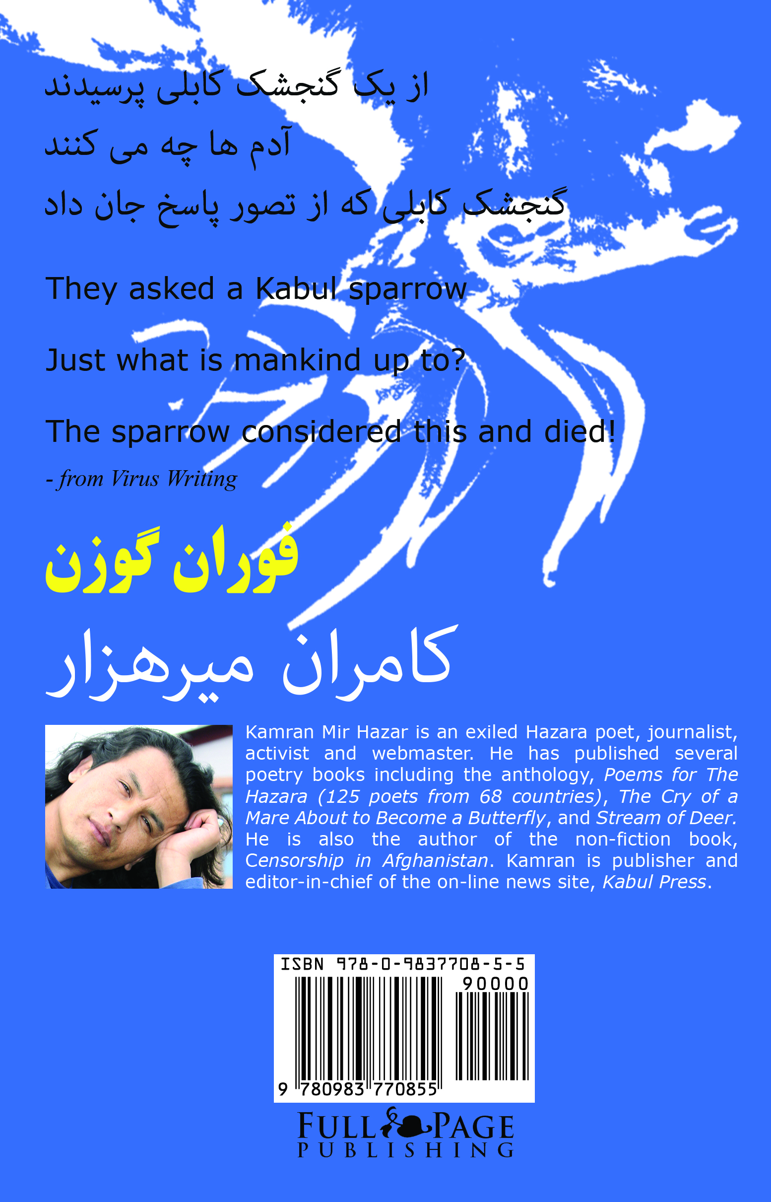 کتاب شعر شاعران جهان برای مردم هزاره در ماه فبروری سال روان میلادی در 600 صفحه به صورت چند زبانه منتشر شد که همه ی شعرهایی که در این مجموعه آمده، به زبان انگلیسی نیز منتشر شده اند.