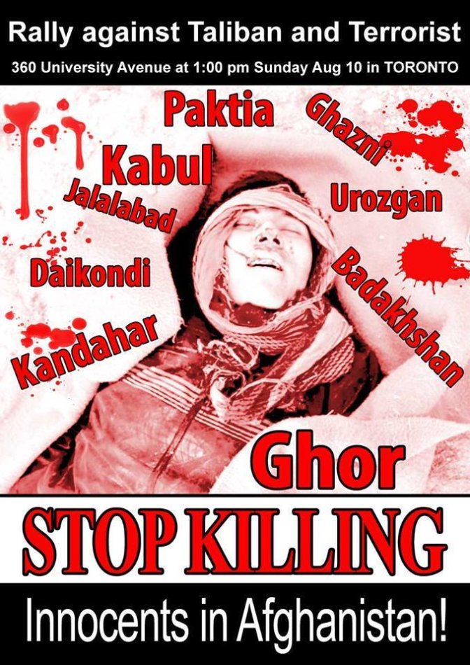 اعلامیه تظاهرات علیه طالبان در مرکز شهر تورنتو کانادا