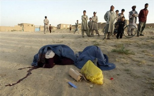 عکسی از پيکر دو زن که توسط طالبان در ماه جولای سال روان در غزنی به قتل رسیدند./ عکس از رحمت الله نیکزاد/ اسوشیتد پرس