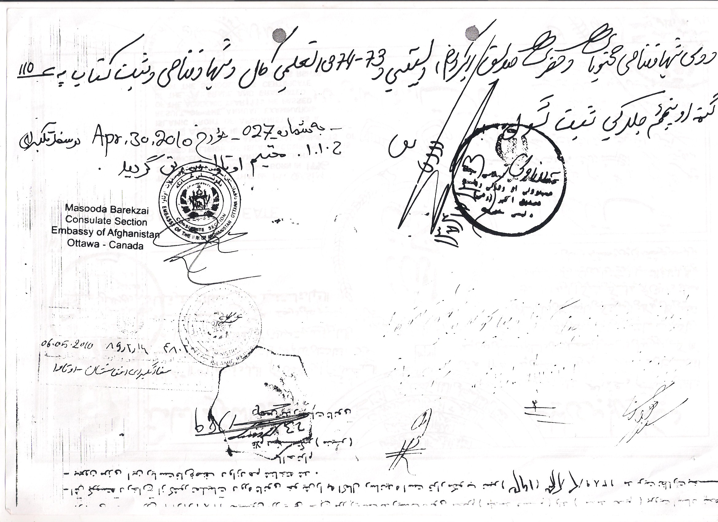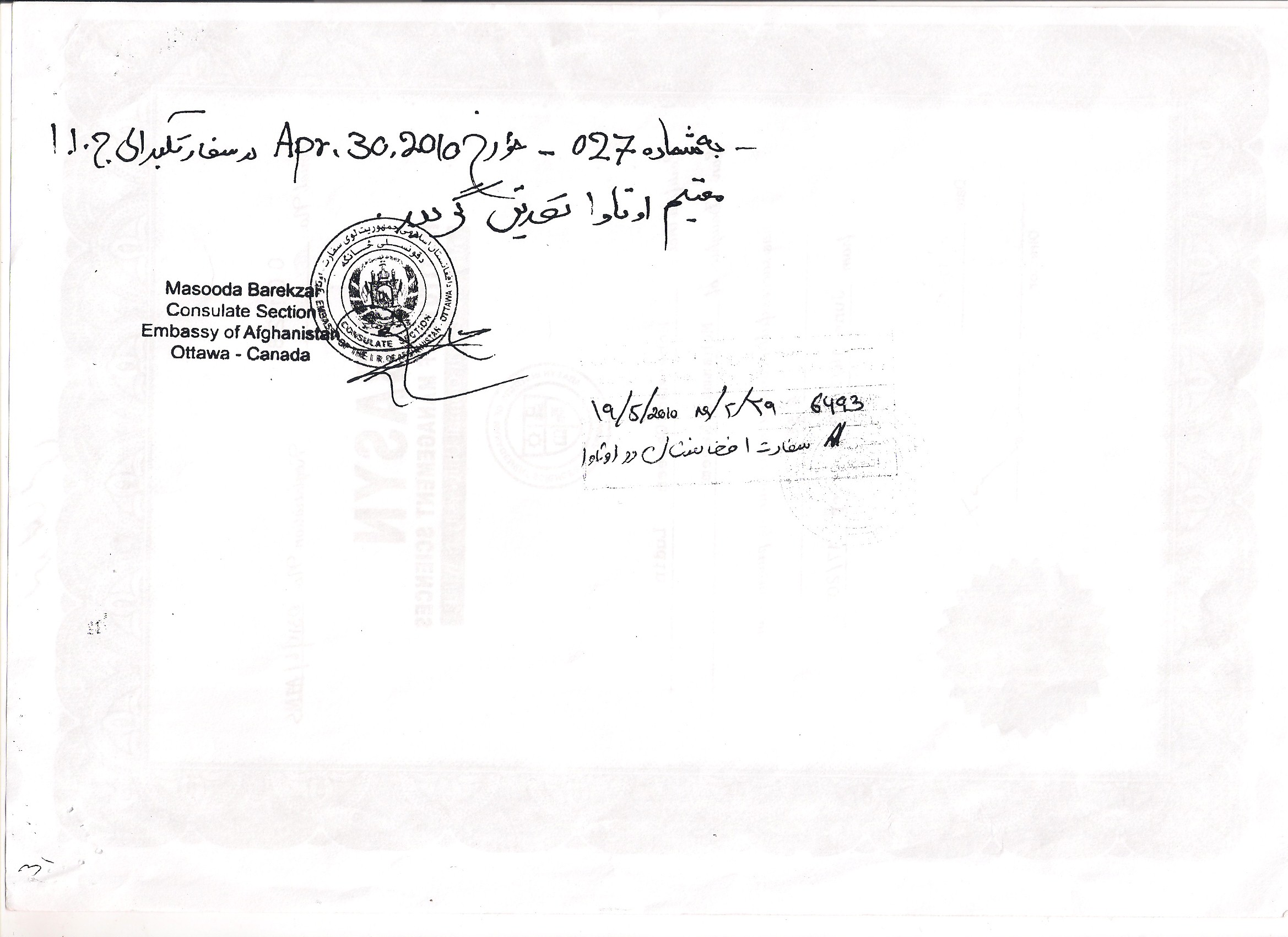 اسنادچعلی ره اوطرف بان که جاوید جان کل فامیل لودینه کانادا برده. دوستی قصه می کرد که بین افغانهای کانادا شایع است که سفیر جدید به بهانه های مختلف برای فامیلهای خود ویزه کانادا ره میگیره. یک روز به بهانه شیرینی خوری زن نَوَکی، یک روز به بهانه طوی. مقصد دیوانه و هوشیار خوده کانادا رسانده. بعد از مدتی هم همراه موتر دیپلوماتیک سفارت کل شانه به دفتر مهاجرت روان میکنه که تقاضای پناهندگی کنند. ( با معذرت ) کدام نَری هم پیدا نمی شه که ازش پرسان کنه که او جوان خام و تازه به دوران رسیده چرا همرای آبروی یک کشور .....