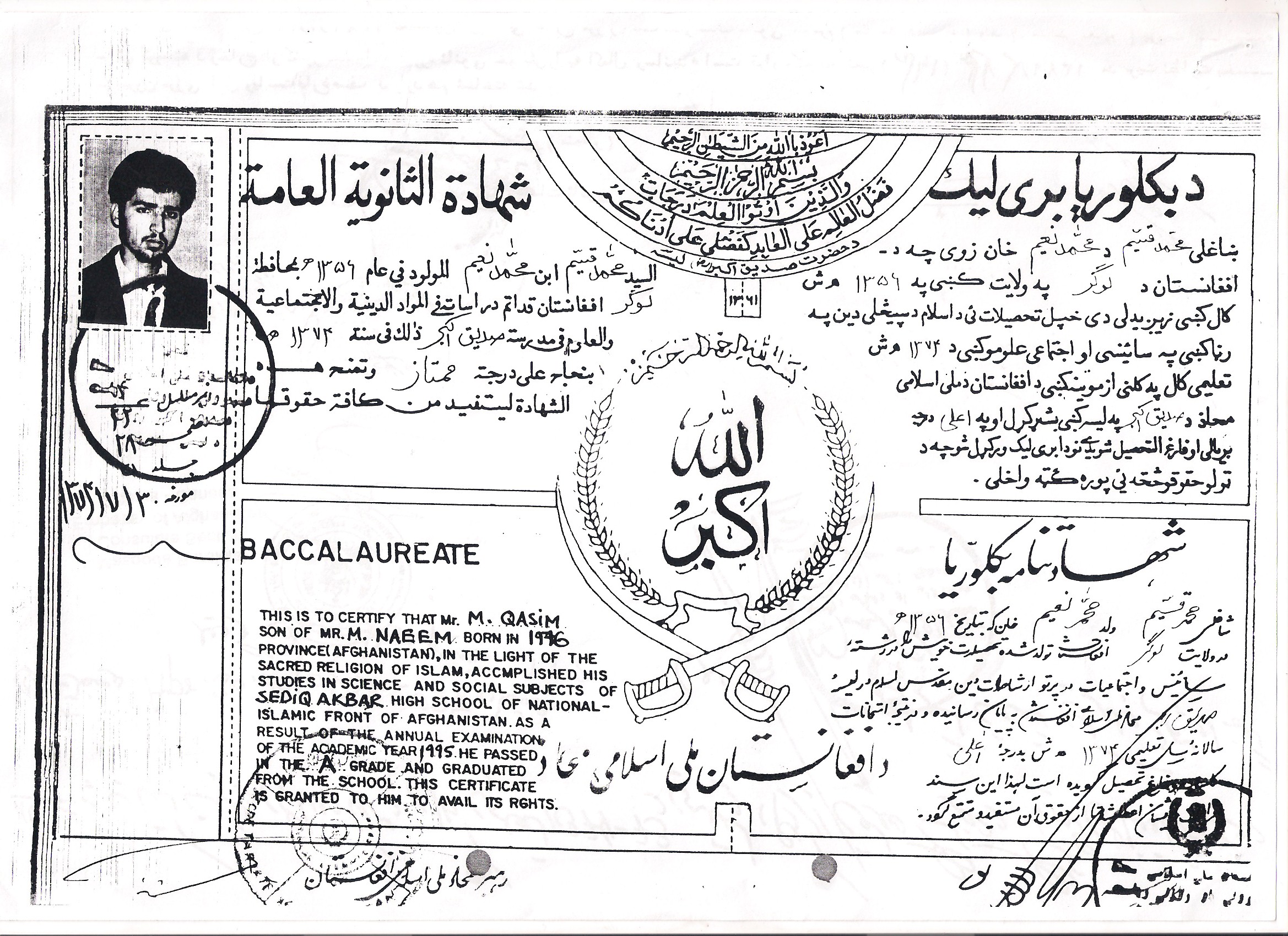 اسناد تحصیلی ساختگی محمد قسیم لودین تایید شده توسط برادر ایشان جاوید لودین