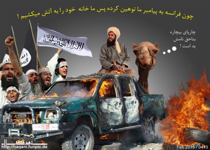 چــون فــرانســه به پیــامبــر مــا توهــین کــرده پس مــا خــانه خــود را به آتــش کشــیده و همــوطــنان خــود را به قتــل میــرســانیــم !