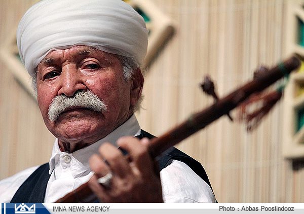 عکس: زنده یاد استاد غلام حسین سمندری در حال نواختن دمبوره/ دوتار