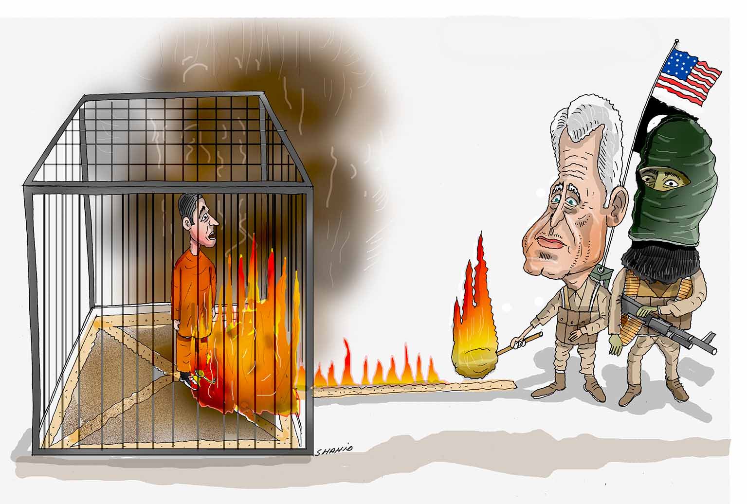 شبکه المیادین در خبری فوری اعلام کرد: گروه تروریستی داعش سه عراقی تحت اسارت خود را در غرب الرمادی به شیوه اعدام «معاذ الکساسبه» خلبان اردنی در آتش سوزانده است.