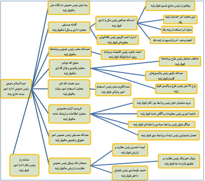 2. در تشکیل سازی ریاست عمومی زمانی ایجاد می گردد که در زیر مجموعه خویش حداقل دو ریاست دیگر داشته باشد؛ اما در تشکیلات اداره امور ایجاد یک ریاست عمومی بنام امور حقوقی و تقنینی که هیچ زیر مجموعه ندارد از کدام منطقی برخوردار است؟ به عنوان یک کسی که چند روزه در امور اصلاح اداره عامه کار کرده ام، ایجاد چنین ریاست عمومی بدون زیر مجموعه جز اینکه پاداشی باشد، برای ارضاء کردن شخص که در آن مقام قرار میگیرد، دیگر منطقی ندارد. یا اینکه یک ریاست عمومی بنام برنامه ها با یک زیر مجموعه بنام ریاست اقتصاد و برنامه ریزی استراتژیک دو نام متفاوت اما در یک ساختار زنجیری از منطق تشکیلاتی برخوردار نیست. اگر ریاست عمومی بود، بهتر بود حد اقل دو زیر مجموعه میداشت که یکی آن میتوانست ریاست اقتصاد و برنامه ریزی استراتژیک و دیگر آن نام دیگری داشته باشد.