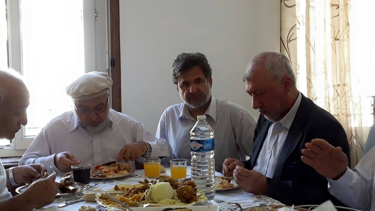 درمیان اشتراک کننده های جلسهء فرانسه یکی هم آقای قریب الرحمن سعید است که خیلی با اشتها با قاشق وپنجه نان نوش جان میکند.