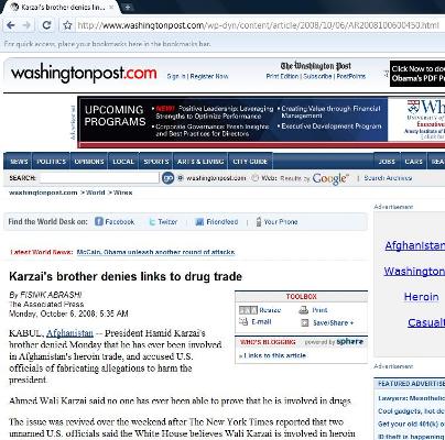 حتا در سایت رسمی واشنگتن پست، خبر خبرگزاری اسوشيتد پرس بصورت کامل آمده و مشخص و واضح گفته شده است که گزارش دست داشتن احمد ولی کرزی در قاچاق مواد مخدر در نيويارک تايمز منتشر شده بود.