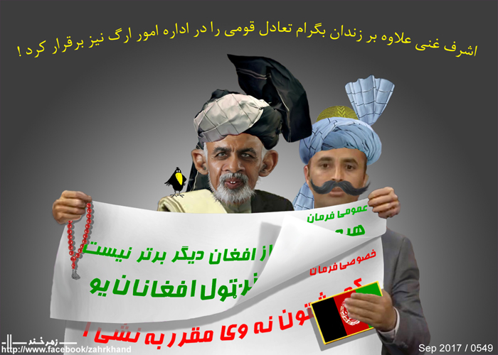 اشــرف غنــی عــلاوه بر زندان بگــرام تعــادل قــومــی را در اداره امــور ریاســت جمهــوری نیــز برقــرار کــرد.