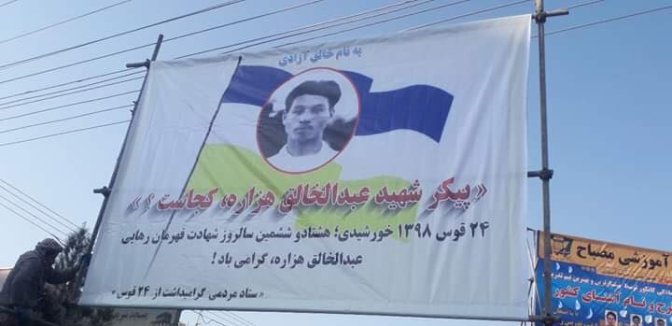 Today, among persecuted peoples of so-called country Afghanistan, Khaliq Hazara is the liberty’s martyr and the symbol of the fight against systematic crimes. There is also a question asked publicly on the billboards of Kabul with Khaliq Hazara’s face and the flag of Hazaristan in the background: Where is the body of Khaliq Hazara?