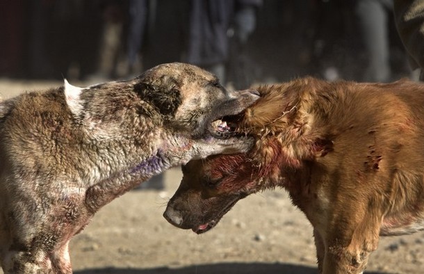 هزاران افغان روزهای جمعه برای ديدن جنگ سگ ها گرد هم جمع می شوند. در افغانستان که يکی از فقير ترين کشورهای جهان است، يک سگ جنگنده ی خوب هزاران دالر قيمت دارد
