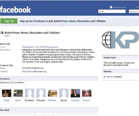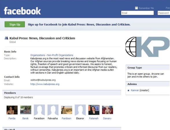 گروه کابل پرس: خبری، تحليلی و انتقادی، در سایت اجتماعی فيس بوک دات کام راه اندازی شد. از اين پس خوانندگان می توانند با عضويت در گروه کابل پرس در فيس بوک از اين راه نيز با يکديگر در ارتباط باشند. عضويت در گروه کابل پرس? برای همگان آزاد می باشد.