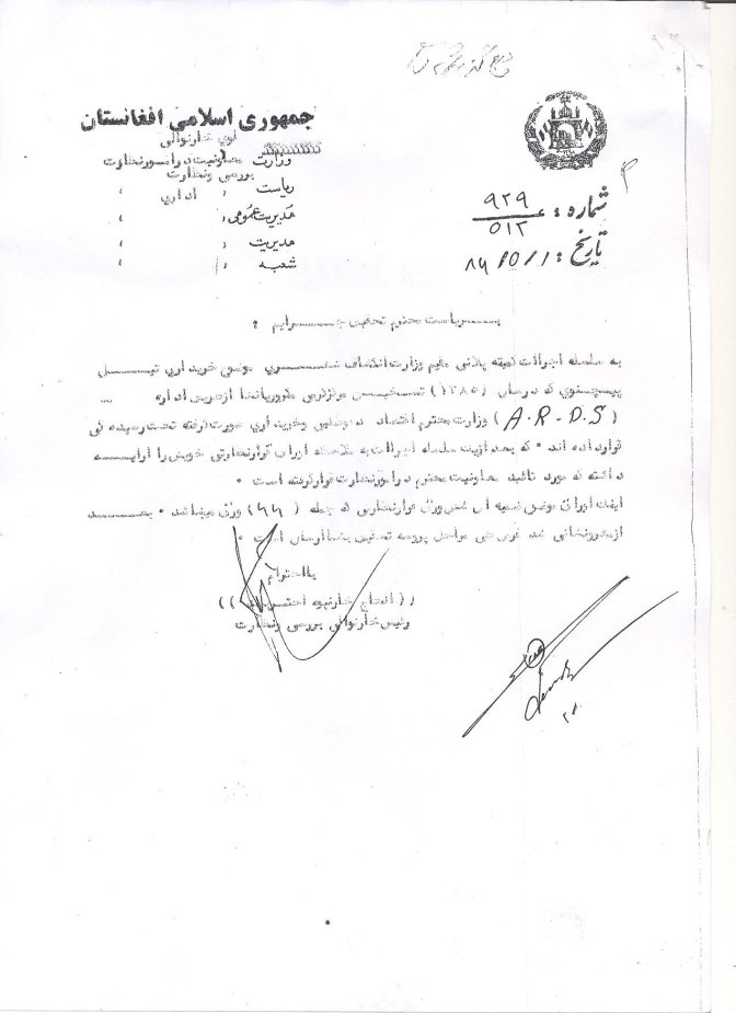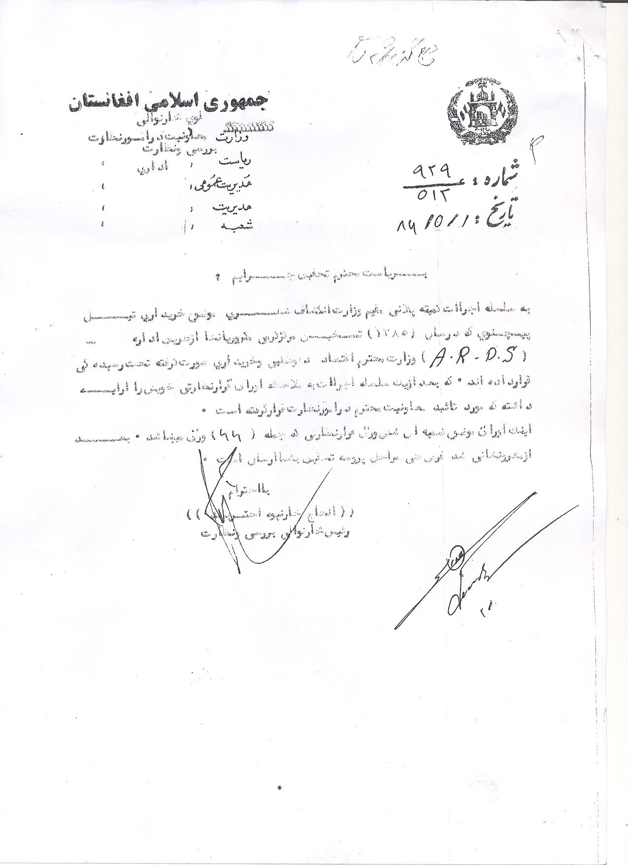 که نازلترین قیمت از ریاست تصدی مواد نفتی و گاز مایع بوده ولی هیئت مجلس داوطلبی و ارزیابی بدون در نظر داشت سوابق و اعتبار تصدی دولتی که به تمام وزارت خانه ها، ادارت دولتی و حتی تاجران مسئولیت عرضه خدمات مواد نفتی رابدوش دارد. در حالیکه وزارت اقتصاد ذریعه مکتوب رسمی تقاضا نموده تا قرار داد با ریاست تصدی مواد نفتی و گاز مایع عقد گردد، که کاپی آن به وزارت مالیه نیز اخبار گردیده بود ولی محترم وحید الله شهرانی به جواب مکتوب وزارت اقتصاد رسمآ هدایت داده است که قرار داد با شرکت حمید مسلم عقد گردد. که چنین اجراات هیئت داوطلبی و ارزیابی و هدایت محترم شهرانی معین مالی وزارت مالیه از یکطرف ریاست تصدی مواد نفتی را از مفاد باز مانده و از جانب دیگر در فی تن تیل پیچوی مبلغ 95 دالر و در مجموع 1583 تن به مبلغ 385، 150 دالرامریکائی وزارت انکشاف شهری را متضرر و خساره مند ساخته اند. که اسامیان هریک: