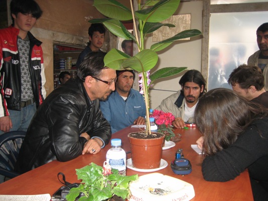 طبق وعده، امروز زود به منطقه که مهاجرین افغانستانی زندگی میکنند رسیدیم. امروز کارکردن وشنیدن حرف آنها، برای ما خیلی مشکل بود زیرا وقتی به آنجا رسیدیم با سیل ازجمعیتی روبروشدیم که پیش خیمه ای که قرار بود در آن با آنها مصاحبه کنیم صف کشیده بودند. همه چیزرا قبل ازرسیدن ما حنیف احمدی معروف به حاجی پاترا که مدت شش سال است با تحمل مشکلات زیاد دراین منطقه زندگی میکند هماهنگ کرده بود. درکنار حاجی پاترا نقش خادم امیری را نیز نباید فراموش کرد زیرا او با حوصله مندی، تمام افرادی که را که درصف های طویل بودند طبق نوبت به داخل خیمه رهنمایی مینمود.