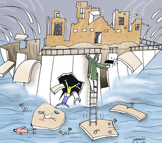 بخشیش باشه باز من در میدان در امدم و نظر کل تانه رد میکنم مثلیکه این کارتونی ره خوب نگا نکردین از کرزی بیچاره چه گله دارین یک دفه باز سیل کنین کشتی خودش غرق شده رایست موج طوفان او ره محاصره کرده خواهی نه خواهی کشتی غرق میشه کرزی بیچار فامید که مردم بسیار عذاب کش میشه شما نمیفامین او کلان ماست خوب میفامه که عذاب غرق شدن سخت است ازی خاطر بم میمانه که رایتش عذاب کش نشوه چرا همرای بم ادم اسان تر میمره . اینالی شما بگوین که کرزی ده خیر ماست یا ده شر ما ؟؟؟؟؟