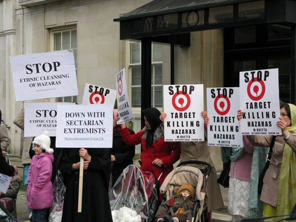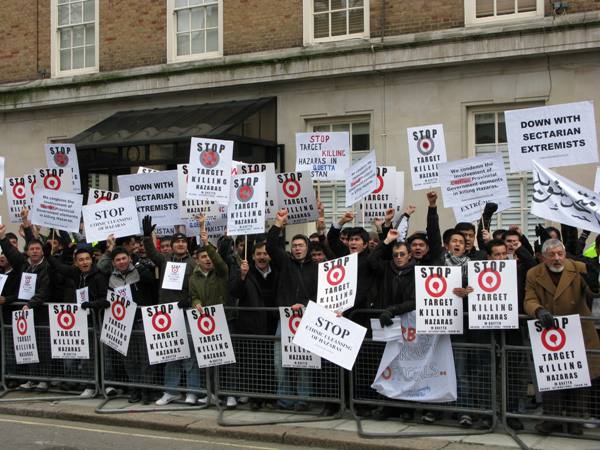 صدها تن از هزاره های مقیم انگلستان، با پرپایی يک تظاهرات مقابل سفارت پاکستان در لندن، اعتراض خود را نسبت به کشتار و قتل های زنجيره ای هزاره ها در شهر کویته ی پاکستان اعلام کرده و خواستار توقف آن و تامين امنيت شدند.