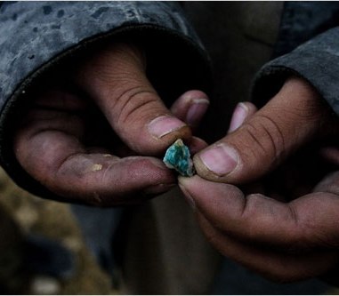 قیمت زمرد در افغانستان توسط راه ها نسبت به نوت های کاغذی سنجیده می شود. برهان امین 56 ساله شریک و پسر کاکای جاوید تکلیف گرده داشت که در اثر سال ها معدن کاوی باعث شده بود و نیروی کاری او را به تحلیل می برد. به عوض مصروف شدن به کار شاقهٌ سنگ کاوی، امین برای همکاران خود که از خاک پوشیده بودند برنج، نان، گوشت و چای آماده می کرد. با وجود کار سبک او، گاهی او احساس مریضی شدید در جریان کار می کرد. او گفت: من اکثراً مریض هستم.