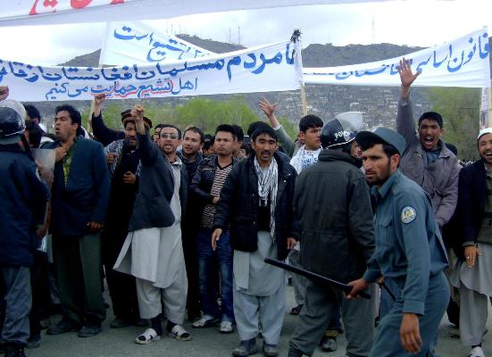 در تظاهرات چند رنگی امروز صدها نفر شرکت ورزیده بودند، از یک طرف فعالین حقوق زنان قانون دموکراتیک میخواهند از طرف دیگر قشر زنان مذهبی دیکته شده توسط شیخ آصف محسنی به مخالفت علیه فعالین حقوق زنان شعار دادند و از قانون شیخ محسنی دفاع نمودند واز سوی دیگری گروه مردان خشمگین با دشنام های رکیک و شعارهای زن ستیزانه شان زنان را دشمنان دین خطاب نمودند و تلاش داشتند تا با خشم و قهر بالای زنان حمله ورشوند که پولس مانع آنها شد. مردان شعار میدادند مرگ به حقوق بشر و مرگ به سیما ثمر