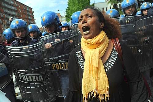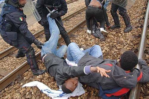 وقتی ازآنها پرسیدم جرمم چیست آنها گفتند خفه باش سیاه گوه. سپس سه نفره مرا به اندازه ی لت وکوب کردند که ازهوش رفتم ووقتی به هوش آمدم خودرا دربخش اورژانس بیمارستان دیدم. وقتی این نوجوان بی هوش بوده است جسدش توسط این مامورین به گوشه ی ازشهرانتقال داده شده وازماشین به بیرون پرتاب میشود. چندروز پیش گروه ازمهاجرین افریقایی که عمدتا ازکشورهای سودان ونیجریه بودند ومدتی است به عنوان پناهندهای سیاسی درایتالیا زندگی میکنند به خاطراینکه چرا سیاه پوست ها درایتالیا ازحقوق انسانی شان برخوردار نیستند وبرای آنها بااینکه اقامه ی پناهنده سیاسی دراین کشور را دارند هیچ گونه حق وحقوقی طبق قوانین بین المللی مهاجرت داده نمیشود دست به تظاهرات مسالمت آمیززدند ولی پلیس ایتالیا به خاطردورنگهداشتن آنها ازدید رسانه ها ازخشونت کارگرفته وبه لت کوب آنها پرداختند که دراثرآن تعداد زیاد ازتظاهرات کنند گان به شدت زخمی گردیده اند. این درحالی بود که درهمان روزتعداد زیادی ازرهبران این کشورها دردومین نشست ضد نژاد پرستی سازمان ملل درشهرژنو به سرمیبردند.