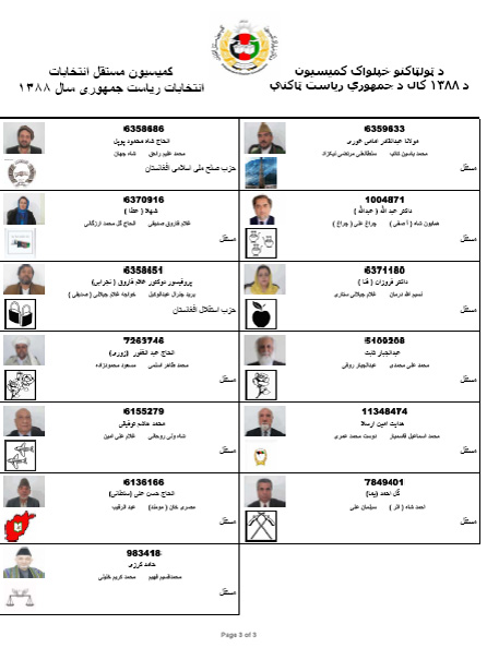فهرست کامل نامزدهای انتخابات ریاست جمهوری افغانستان در سال 1388
