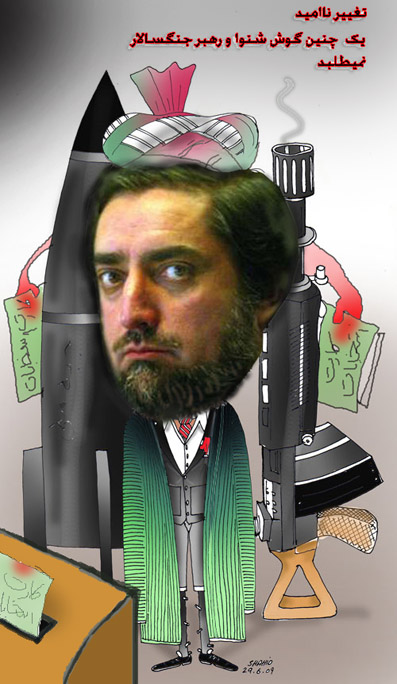 آقای شاهد کار شما در حد یک کارتون خوب است. نامی را که گذاشته اید، بهتر بود استعاره و یا ... باشد. به هر صورت کرزی که برنده نشد، همین داکتر عبدالله می ماند و ما و شما و کارتون های او. بسیار خوب است که از همین حالا شروع کدی و پیشتاز شدی.