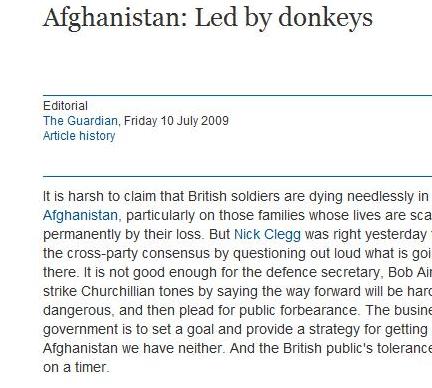 دقیقا 13 روز پیش از این، در تاریخ 18/4/1388 روزنامه بین المللی گاردین مطلبی را تحت عنوان «افغانستان توسط خرها (دانکی ها) رهبری می شود» را نشر کرده بود که انتقادات رهبران کشور را به دنبال داشت.
